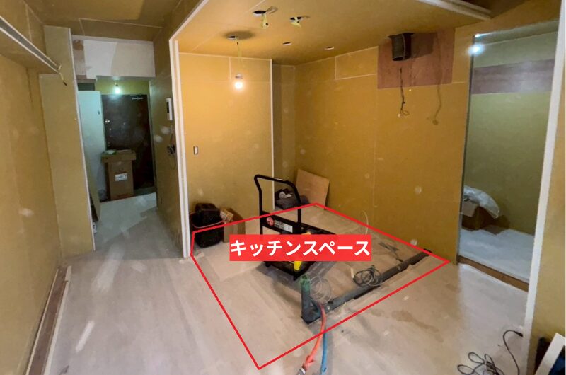 解体前の部屋もリノベーションされており、配管ダクトの位置に合わせて造作していたため、梁(ハリ)の幅が大きく取られていました。今回はその幅を最小限に調整します。