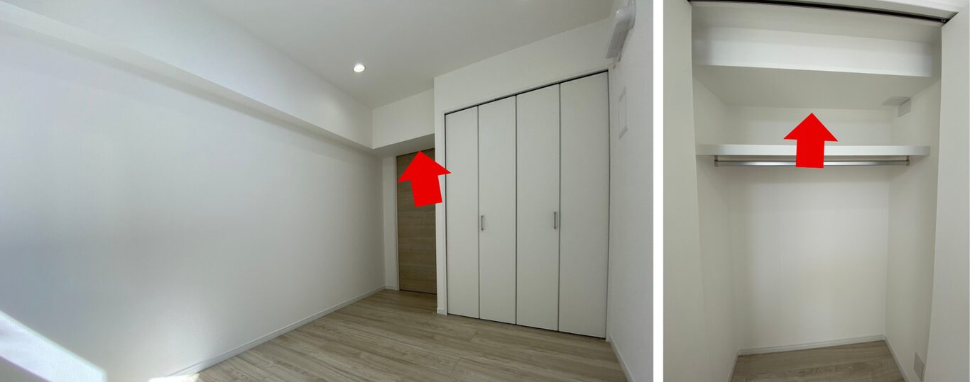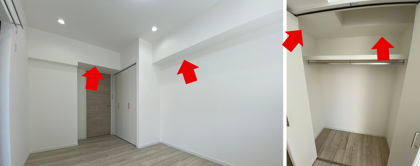 さらに部屋の角にある梁はクローゼットの中に収めます。