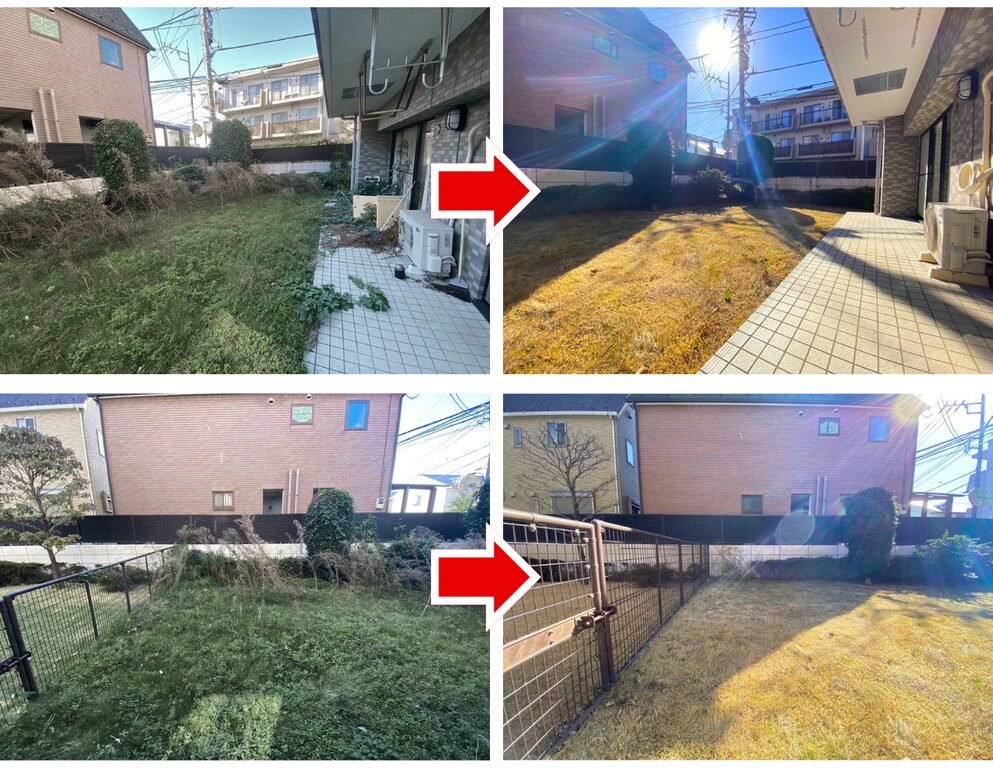雑草が生い茂っていた庭は、しっかりと手入れを行いました。