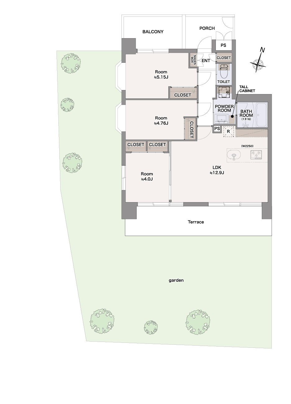 以前の間取りは1LDKでしたが、今回ファミリー層が暮らしやすいように3つの居室を作り3LDKにしました。