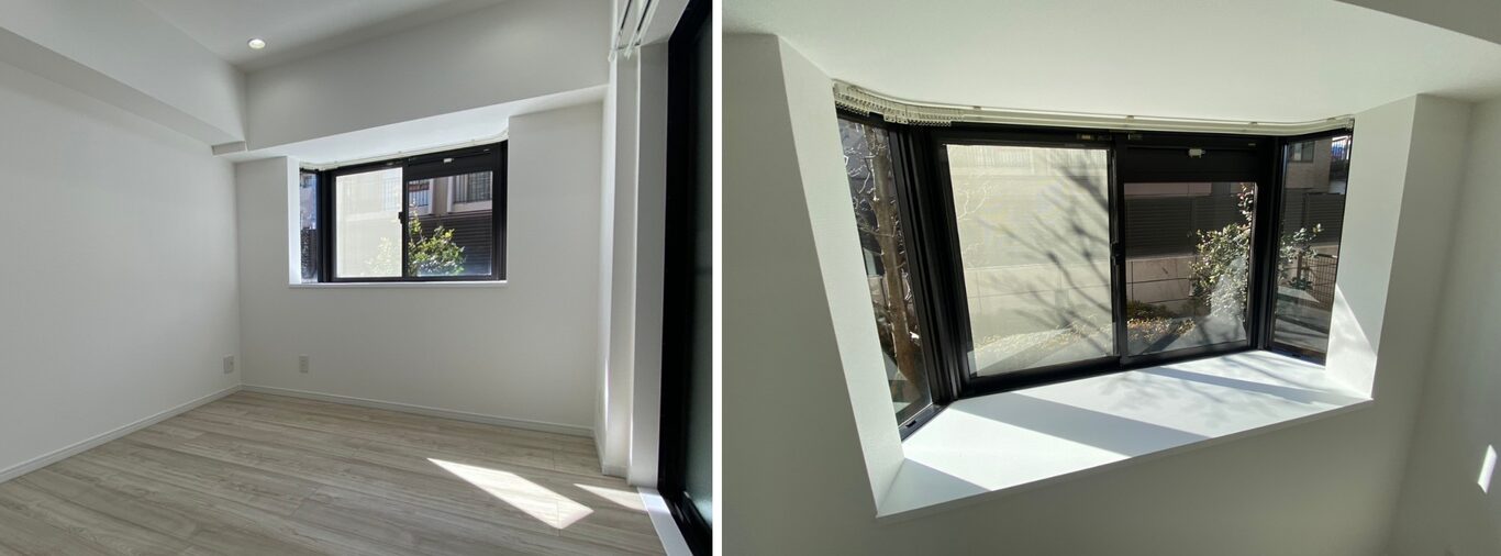 また、居室については、それぞれの物理的な床面積は広くないものの、前述したように、梁を避けた造りで、かつ、大きな出窓があることで、広さを感じやすい空間になっています。