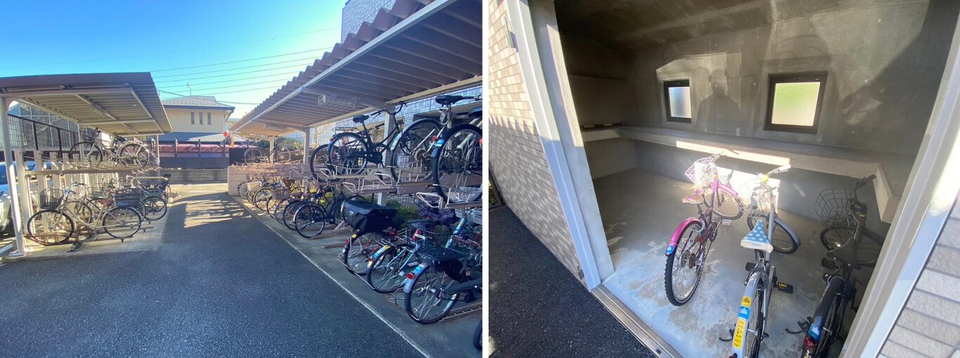 広い駐車場と駐輪場が完備されていて、家族で住む人が使用しやすくなっています。