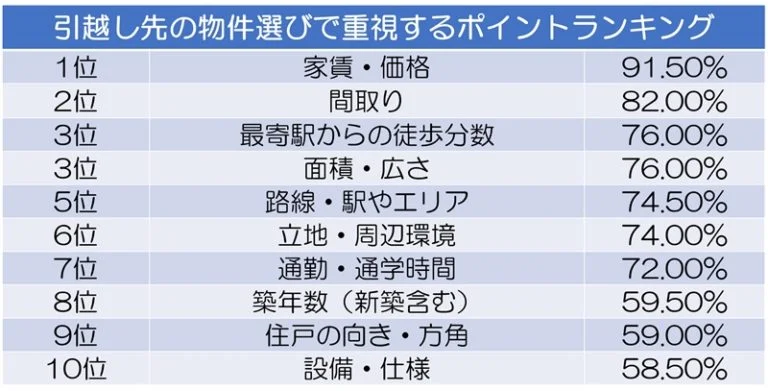 築年数や設備よりも、多くの人が間取りや家賃、駅までの距離が大事と回答しています。