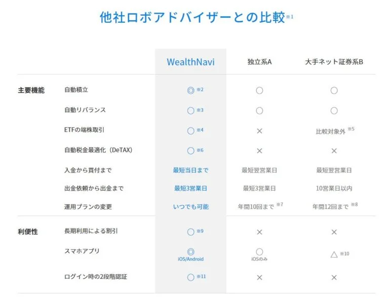 引用:Wealth Navi 他社ロボアドバイザーとの比較
