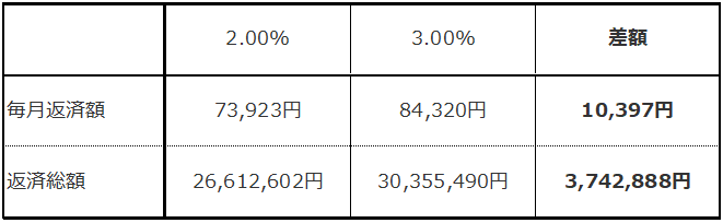 今回のケースでは金利が1%の違いで計算していますが、あるケースでは他の金融機関に打診したら金利2%も違った。