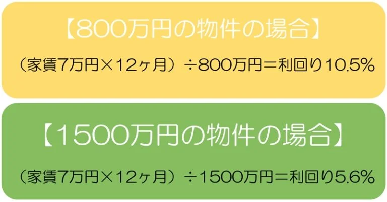 上図の800万円の物件は利回りが10.5%になるため、約10年で投資したお金が戻ってきます。