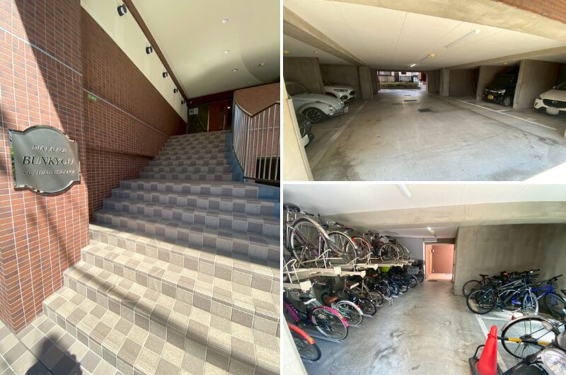 1階部分には駐車場と駐輪場が設置されているため、エントランスは階段を上がった2階の高さに位置しています。