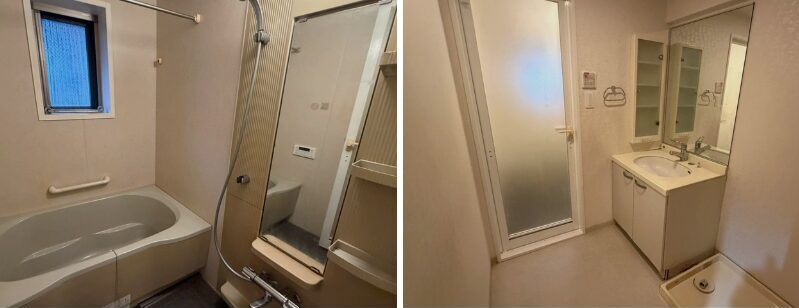 今回の改修では、キッチンの配置に大きな制約があったため、室内の広さの確保と2部屋のレイアウトを優先して検討を進めました。それに伴い、水回りについては大きな変更を加えず、必要に応じて洗面室と洗濯機置き場の位置のみを見直しています。