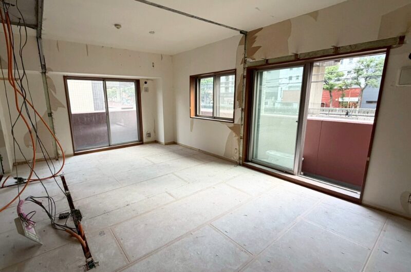 角部屋ということもあり、スケルトン状態になると改めて自然光の入り方がよく分かります。空間全体が明るく、これからの仕上がりがますます楽しみです。