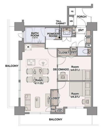 物件は大通りに面しているため騒音が懸念されましたが、2重サッシの採用により室内は非常に静かです。バルコニーに面している洋室は大通りとは反対側に配置したことで、より落ち着いた環境を確保できました。