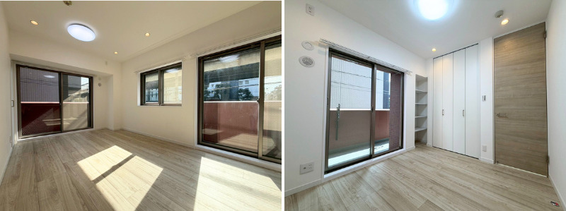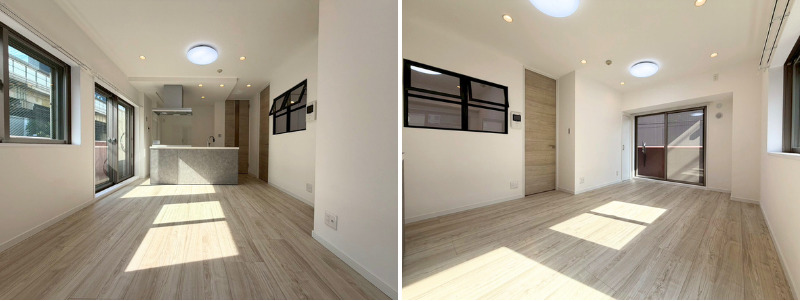 完成後は、空間全体の広がりと回遊性が生まれ、2LDKとしての使いやすさも大きく向上しています。間取り変更に伴う制約を逆手に取り、住まいの質を高める結果につながったポイントのひとつです。