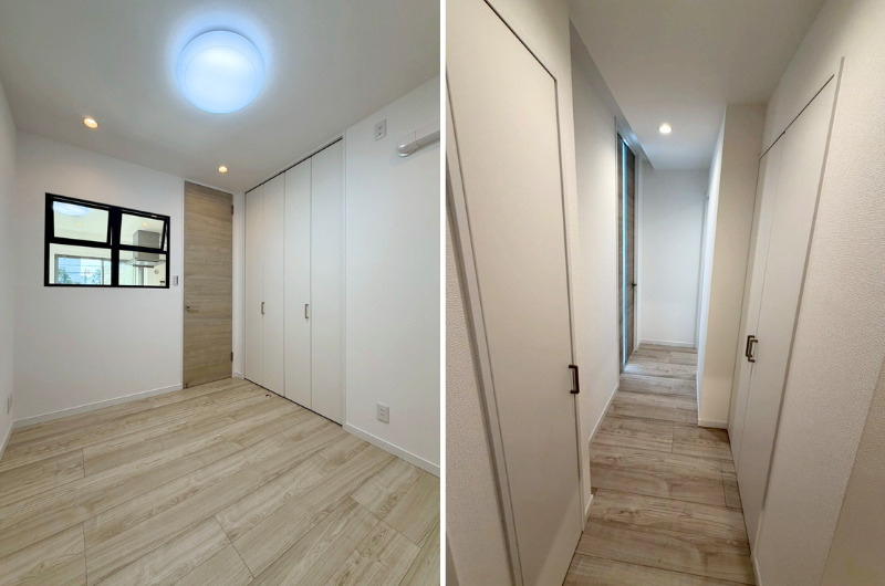 一方、玄関側の洋室はデコマドの設置により、リビングからの光と空気の流れを取り込み、閉塞感のない居室に仕上がっています。