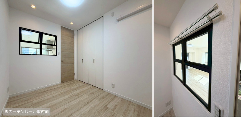 一方、玄関側の洋室は窓がないため採光が課題でしたが、室内窓(LIXIL「デコマド」)を設置することで明るさと空気の流れを確保しました。小さなお子さまがいる時期には、このデコマドから様子を見守ることができ、将来的にはカーテンを取り付けられる仕様としているため、成長に合わせて柔軟に使い続けられる空間となっています。