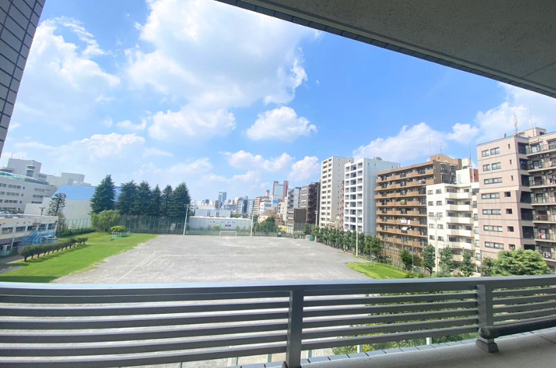 開口部が大きく、目の前が中学校のグラウンドで高い建物もないので、眺望がよく大きな空を常に感じられます。