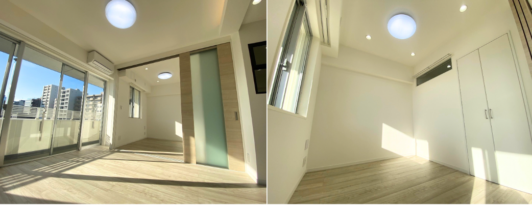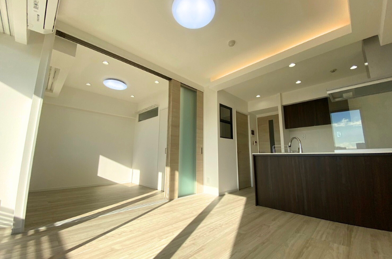 LDKと居室は引き違い戸で仕切られているため、開放してLDKを広く使うことや、居室を寝室として利用することも可能です。