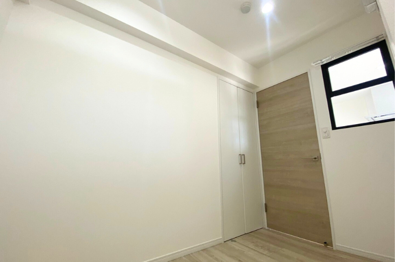 居室からはデコマドとFIX窓の効果で光が入り、扉開閉部のデッドスペースにクローゼットを配置し、約3.13帖を最大限活かし、どのような用途でも家具配置が想像できるような空間を作りました。