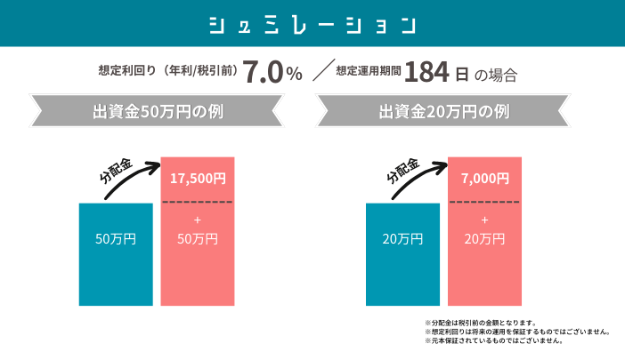 本プロジェクトへ出資した場合のシュミレーションは以下の通りです。
