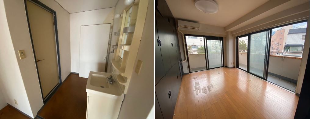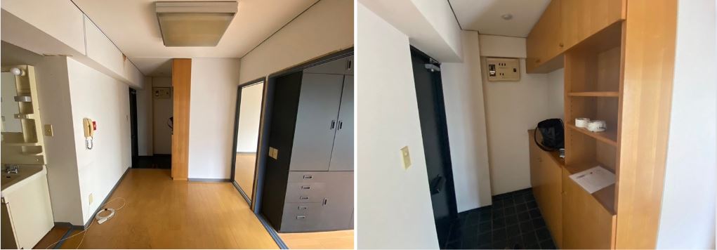 玄関に入ってすぐDKがあったコンパクトな間取りから、単身者に人気の1LDKに変更します。