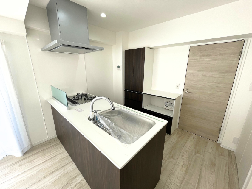 キッチンのガラスパネルは最小限にしたことで、キッチンからLDKへの開放感が更に高まっています。また、タッチレス水栓の機能を備えていて、機能面も向上しています。