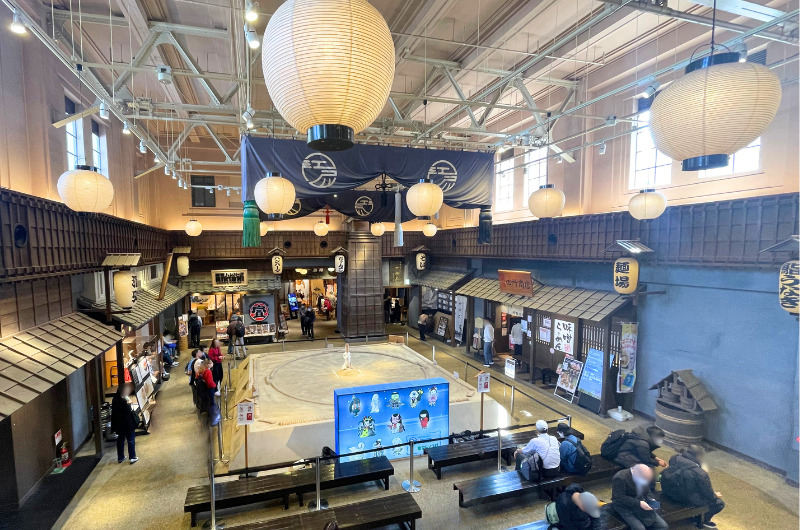 JR両国駅に直結する「両国江戸NOREN」では、江戸の町屋をイメージした空間の中に飲食店や土産店が集まり、食事や買い物を気軽に楽しむことができます。