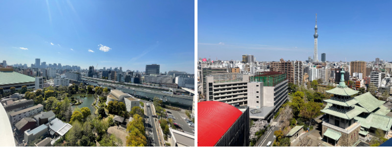 開放感のある景色の先には東京スカイツリーを望むことができ、都心にいながらも視界の抜けを感じられる贅沢なロケーションが広がります。