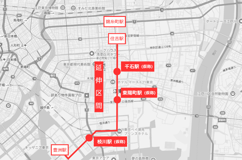 注目されているのが、東京メトロ有楽町線の延伸計画です。いわゆる地下鉄8号線として、豊洲から住吉方面へ延伸する構想が進められており、2030年代半ばの開業が予定されています。開業すれば都心や湾岸エリアへのアクセス向上が期待され、墨田区周辺の交通利便性はさらに高まる可能性があります。
