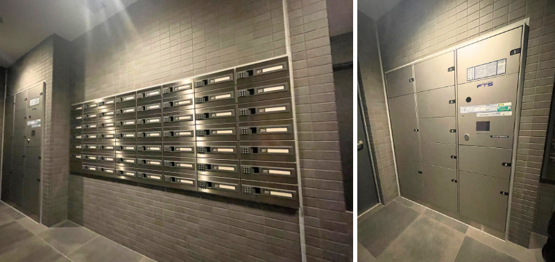 ポストや宅配ボックスも美しく整理された空間に設けられており、共用部全体に行き届いた管理体制が感じられます。