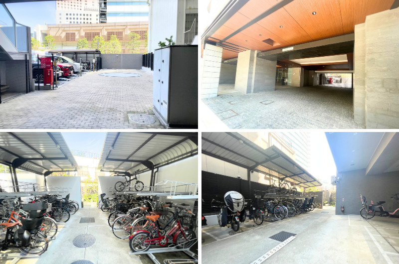 敷地の後方には駐車場や駐輪場が整備されており、日々の生活を快適に支える設備が整っています。