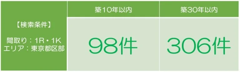 仮に「値段がちょっと高くても、その分広いお部屋に住みたい」なんて思っても、築30年まで許容するなら、希望の物件が見つかる可能性も高くなります。