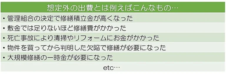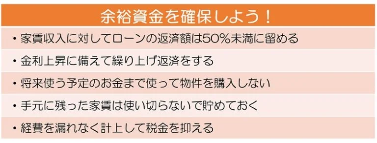 想定外の出費に備え、家賃収入のうち何割かは手元に残しておいたほうが良いでしょう。