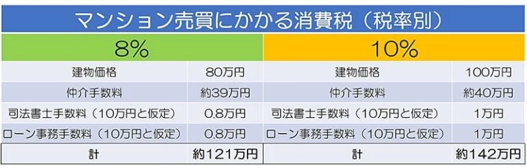 建物価格が1000万円のマンションを購入したとすると、消費税8%と10%で以下のような違いが出ます。