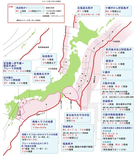 出典:地震調査研究推進本部「主な海溝型地震の評価結果(地震発生確率)」