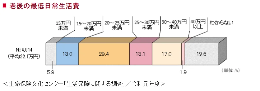 内訳は「老後の最低日常生活費」の月額平均額が22.1万円。