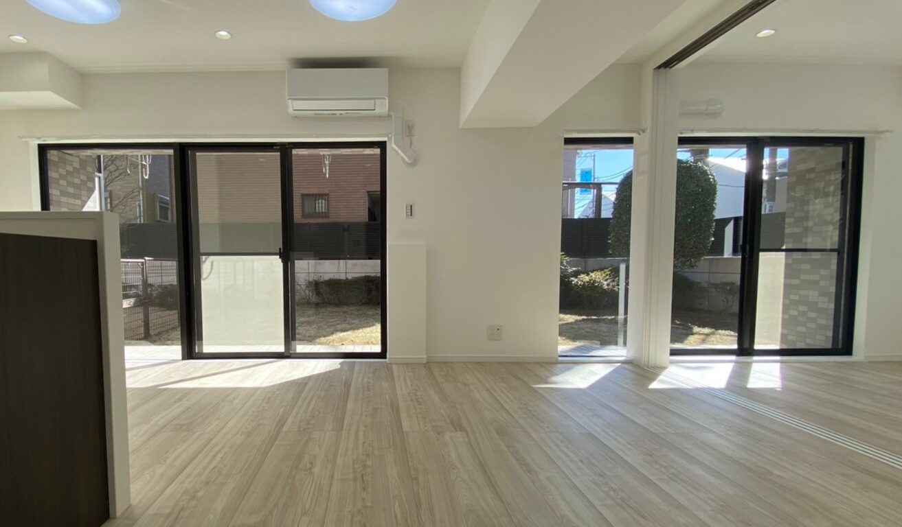 一般的には1階では採光を望める物件は少ないのですが、この物件は、広い庭に面した南向きの窓から、しっかりと自然光が入り、とても清々しい気分になります。