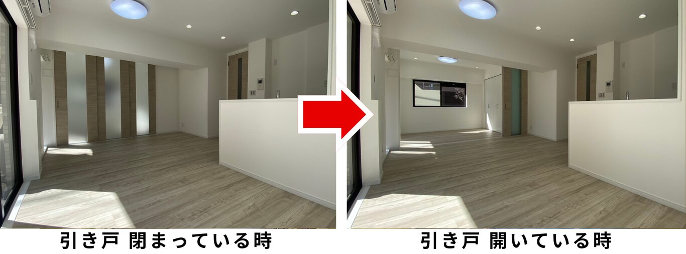 また、もともと広く取られていたリビングは、引き戸を使って仕切ることで、1つの居室になるようになっています。
