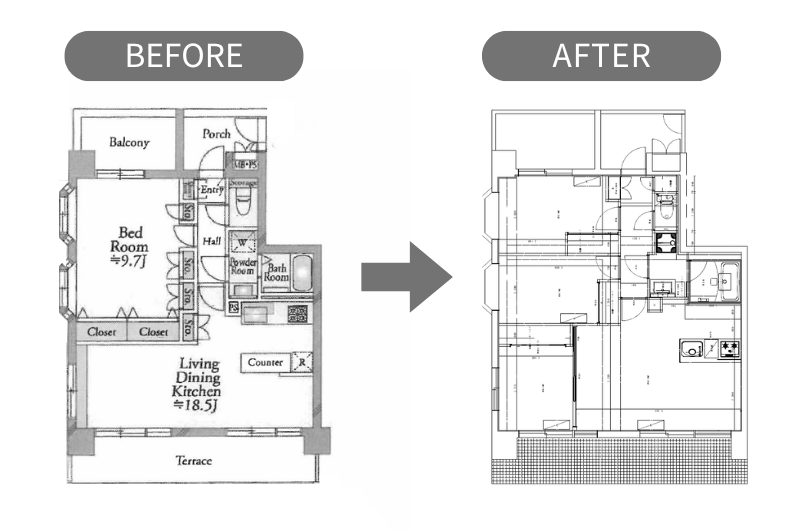 ✓居室を3つに増やしてファミリー向けの物件に変わる