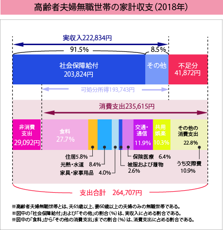高齢夫婦の毎月の収入は平均22.3万円。