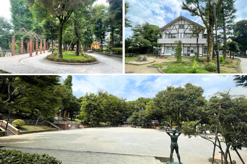 物件裏に隣接する「大塚公園」は、春は桜、秋は紅葉と、四季折々の自然が楽しめる憩いの場です。公園内には山小屋風の外観をした図書館があり、外には木陰で読書ができるテーブルと椅子も設置されています。