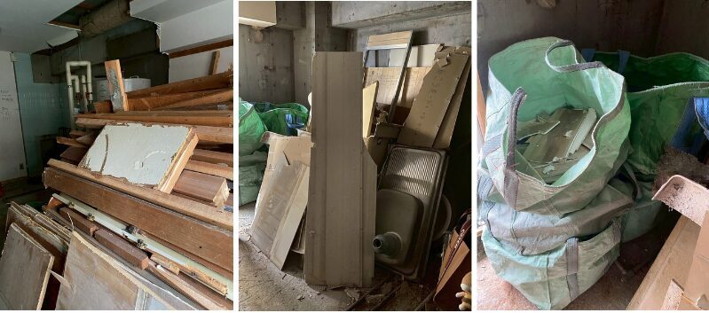 1Rの解体でも、壁や床をすべて撤去すると驚くほどの廃材が出ます。