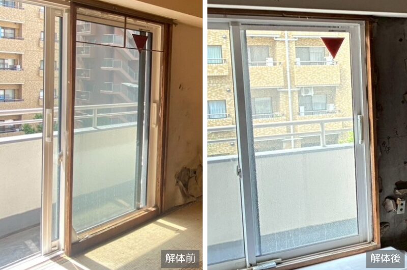 サッシ周りには枠を取り付けて、洋室の雰囲気に合うように仕上げます。これまで障子だった箇所も、カーテンレールの取り付けが可能となり、今後さらに加工が進められる予定です。