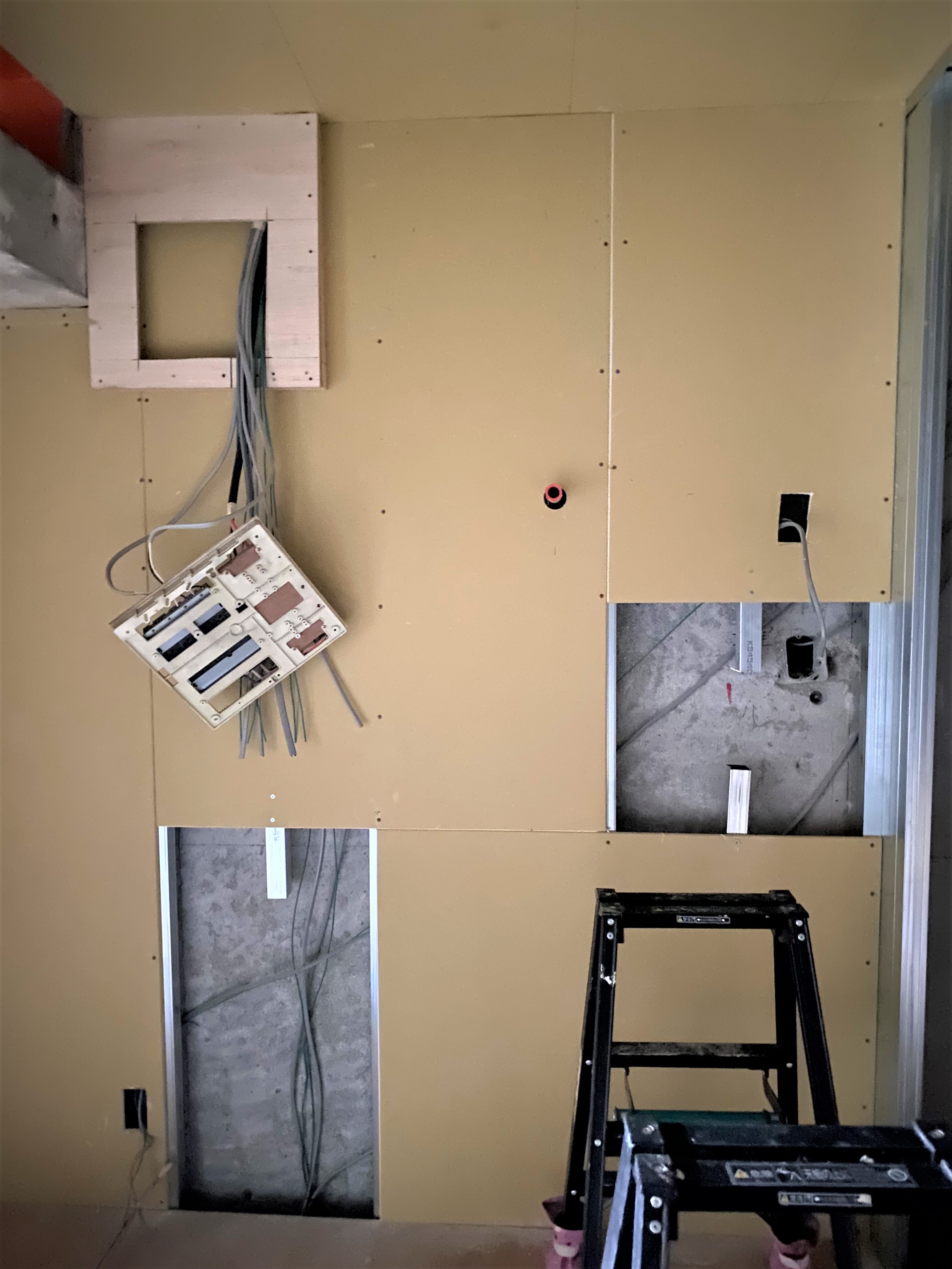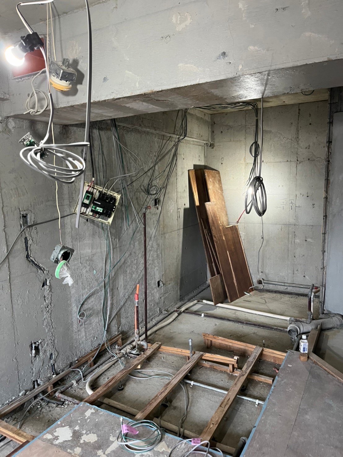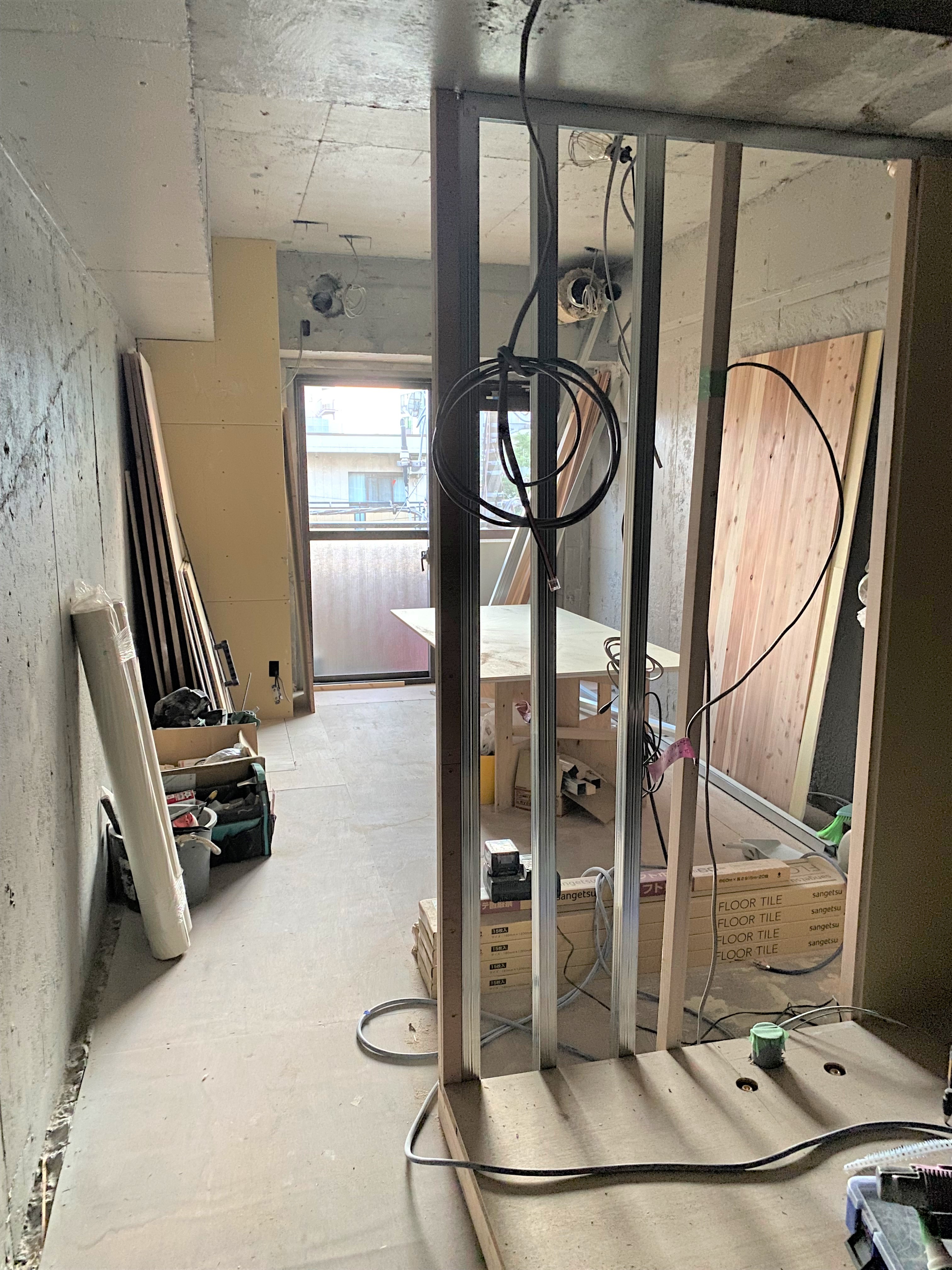 洗濯機置き場・バストイレがあったスペースと居室の間には新たに壁ができ、全体の形が見えてきました。