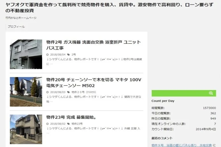 以前、当ブログの「【保存版】初心者向け不労所得21種類まとめ|初期費用や収入額」という記事の「ヤフオク長者から不動産オーナーへ!「竹内かなと」さん」でもご紹介させていただいていますが、竹内さんは不動産競売の話となれば外せない人物です。