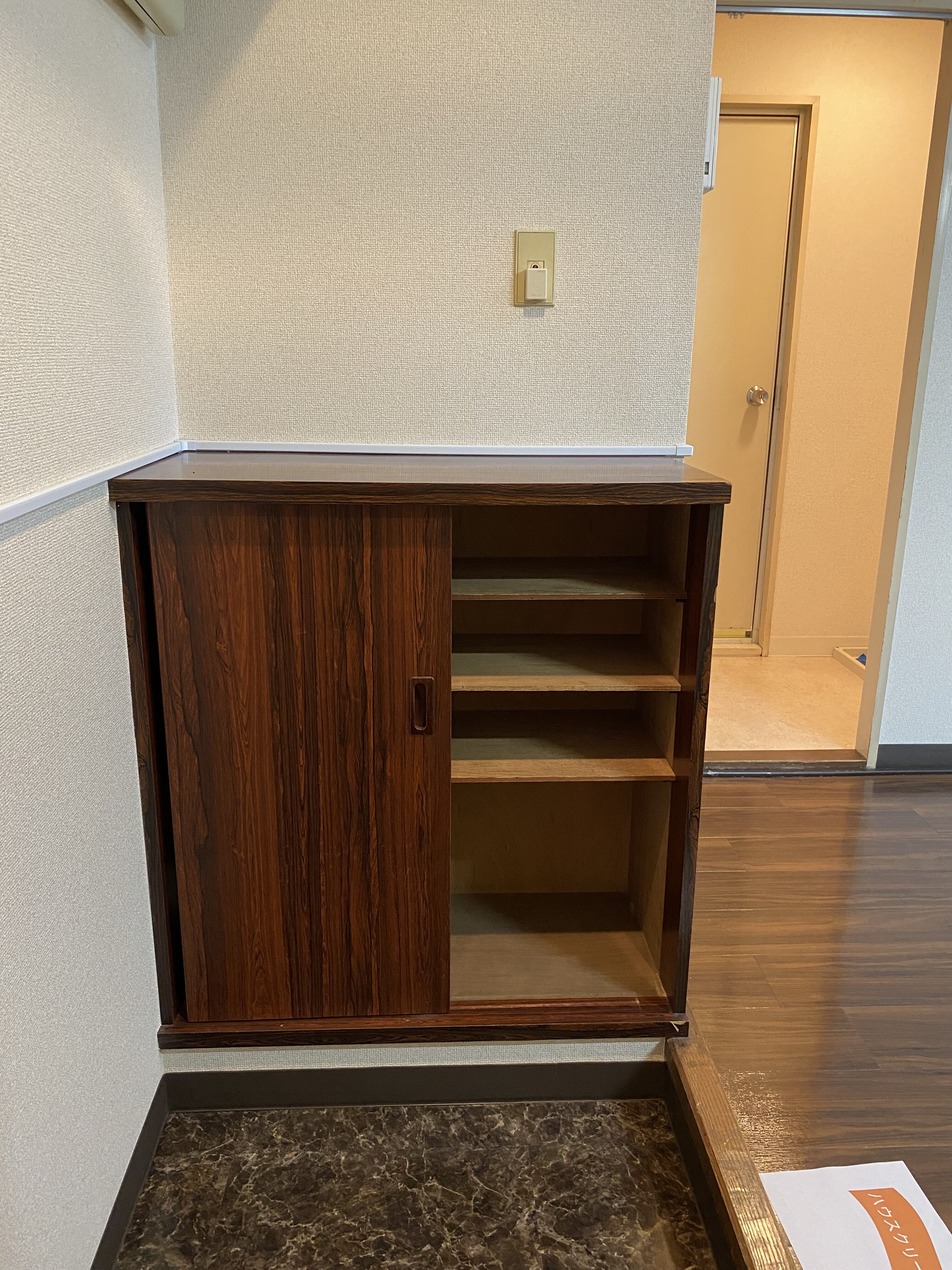 備え付けのシューズボックスも年代を感じられるものですが、リノベーションで付加価値をつけていきます。