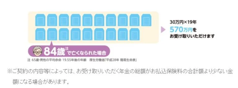 ・死亡するまで受給できる。長生きした場合は払込保険料よりも多くの年金を受け取れる。
