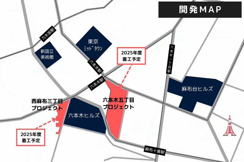 第2六本木ヒルズ(六本木五丁目西地区第一種市街地再開発事業)をはじめ、西麻布三丁目北東地区第一種市街地再開発事業が計画されています。この再開発でさらに街のイメージ変わっていきそうです。