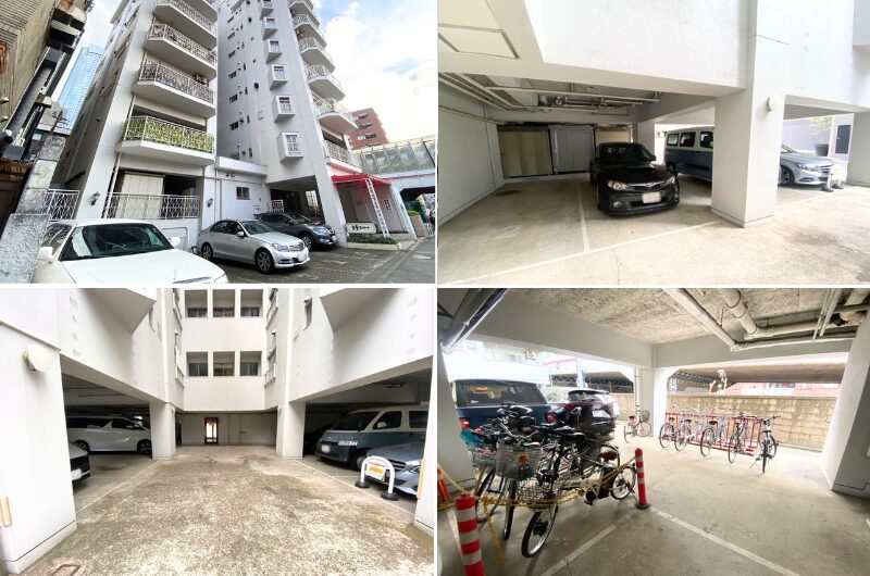 建物1階部分とエントランス横は、広い駐車場と駐輪場スペースになっています。