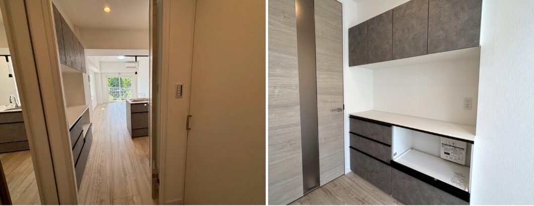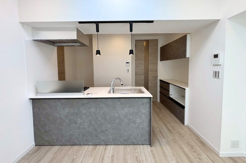 そこで今回は、初めてグレーを取り入れたキッチンに挑戦。グレーを基調とすることで、空間にほどよい落ち着きが生まれ、よりスタイリッシュな印象に仕上がりました。今後のリノベーションでも、積極的に採用していきたい仕様のひとつです。