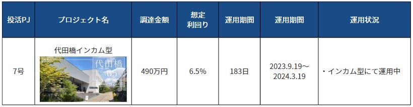 投活プロジェクト7号(2023年9月19日~2024年3月19日)
