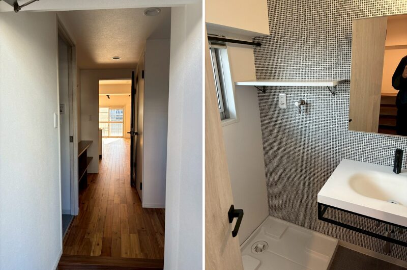 玄関横の貴重な窓は、水回りに明るさと開放感をもたらし、居心地の良い浴室空間を演出します。洗面室は単身用に適した広さに調整し、その分LDKを広く確保することで、日常生活がより快適になります。